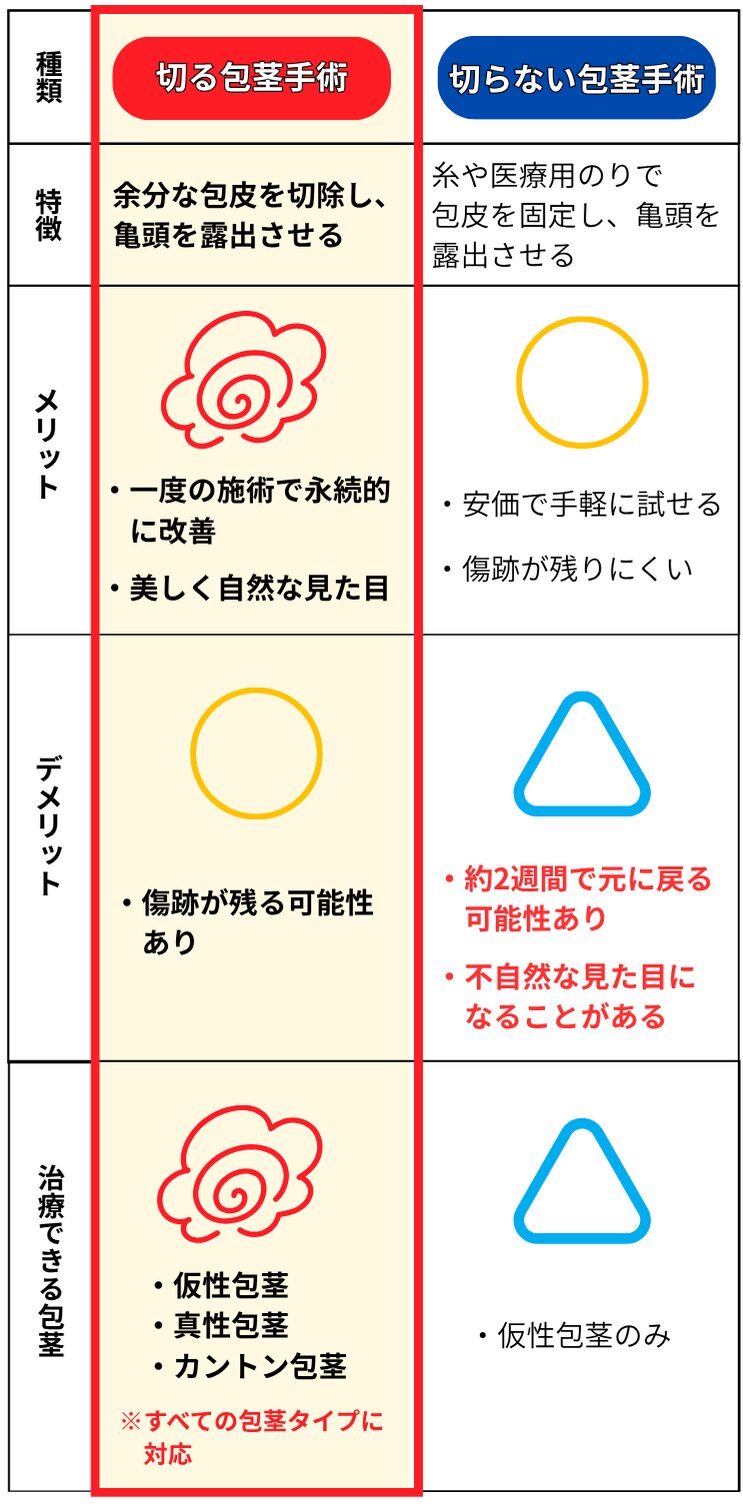 包茎手術には、以下の2種類があります。