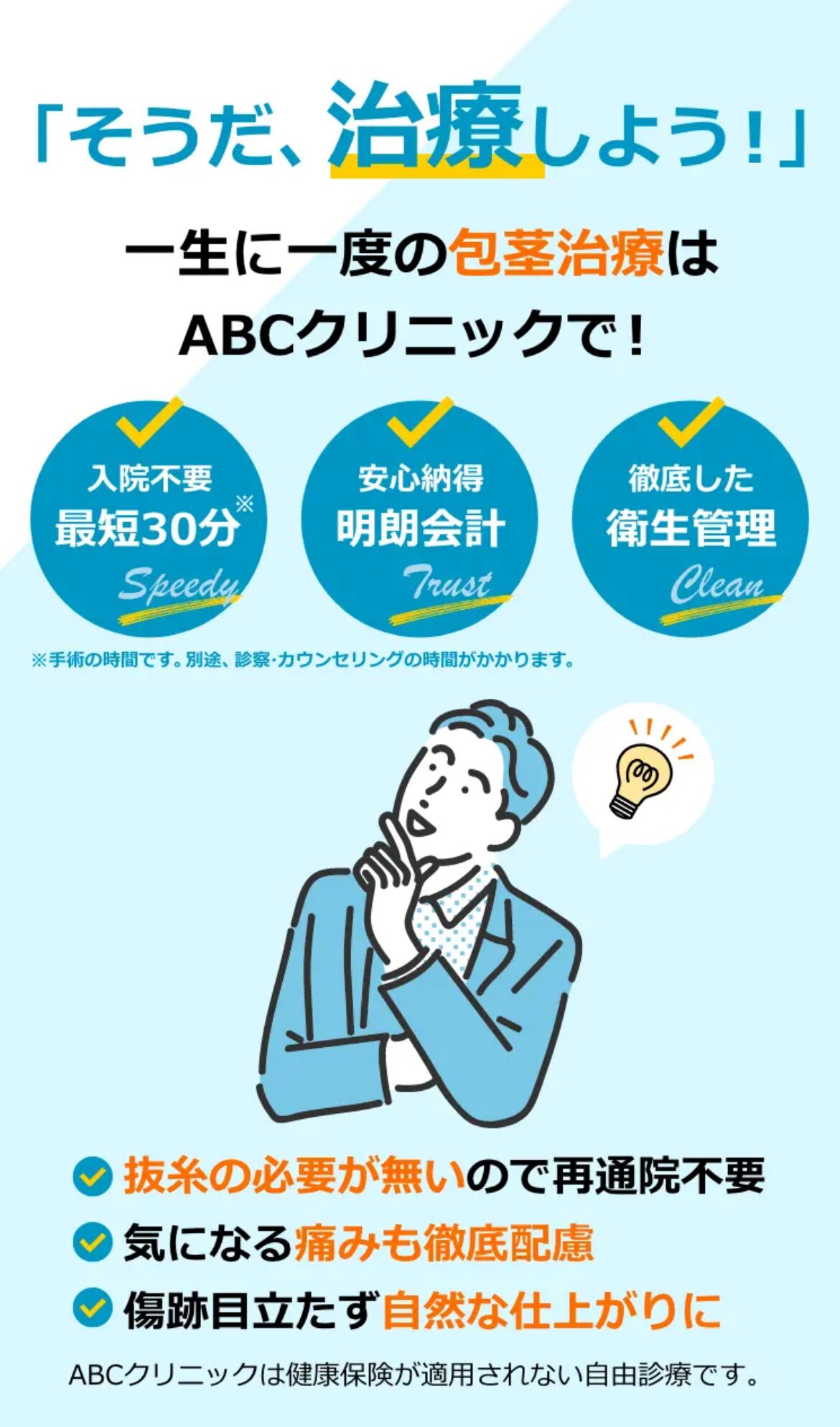 だからこそ、包茎を放置しないためには、失敗しない包茎クリニック選びが最重要になってくるんです!